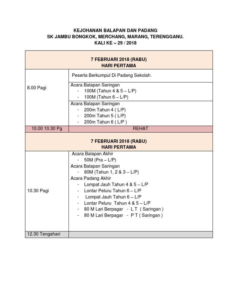 Jadual Acara Sukan Tara Kejohanan Balapan Dan Padang Pdf